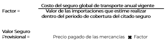 En este contexto, el artículo 117 del Reglamento de Ley Aduanera establece las condiciones que deben cumplir los importadores en caso de haber contratado un seguro global anual, disponiendo para ello de una modalidad para la determinación provisional de este valor, sujeta a los siguientes requisitos: